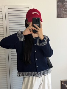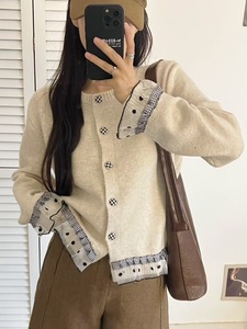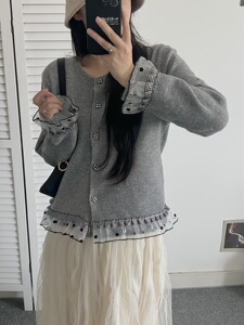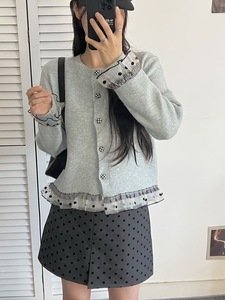 2025年女装春季新款韩系洋气针织开衫波点图案宽松慵懒风女式毛衣