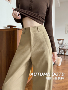 高品质暗扣西装裤女秋季新款宽松显瘦复古阔腿裤慵懒直筒弯刀裤子