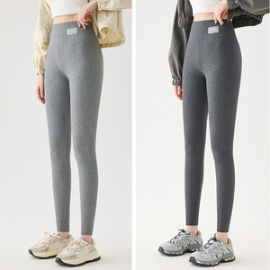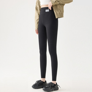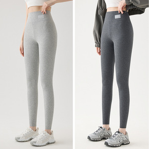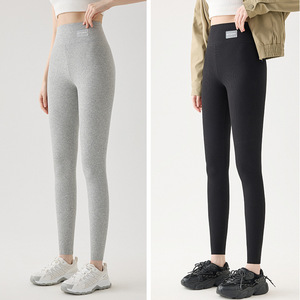 螺纹纯棉打底裤女外穿春秋季薄款秋裤高腰紧身弹力大码显瘦九分裤