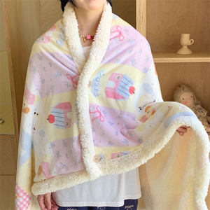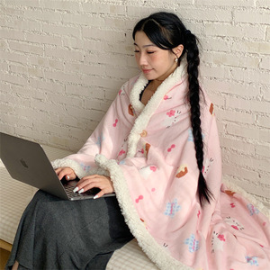 莓莓粉(双层:牛奶绒+羊羔绒披肩毯)