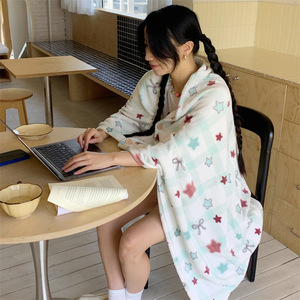 薄荷奶咖星星(单层:牛奶绒披肩毯)