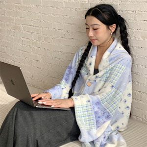 冰岛蓝(双层:牛奶绒+羊羔绒披肩毯)