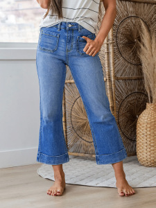 新款修身直筒裤时尚女士牛仔裤通勤百搭