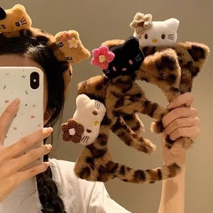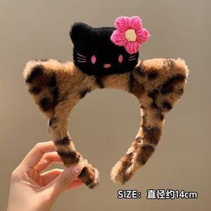 新款可爱头猫毛绒豹纹发箍女洗脸化妆发箍女洗脸化妆头箍卡通发饰