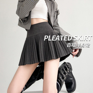 张元英同款西装百褶裙女春秋夏2025新款高腰显瘦a字灰色半身短裙
