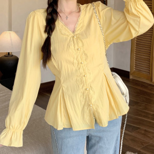 2025秋季新款大码女装胖法式蕾丝拼接长袖衬衫女显瘦上衣