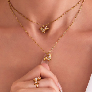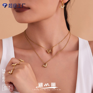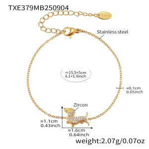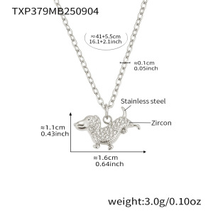 谜丽 创意不锈钢满锆生肖狗吊坠项链手链戒指耳环套装镀18k金保色