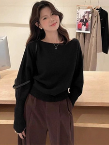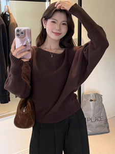 一字领露肩慵懒小众显瘦长袖上衣女高级感气质秋季韩系温柔针织衫