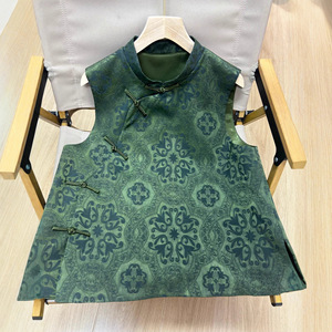 深圳南油2025秋款中式立领盘扣油丝工艺马甲版型显瘦气质无袖上衣
