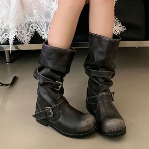 2025年新款复古堆堆靴粗跟旅游做旧西部牛仔靴女废土风长筒骑士靴
