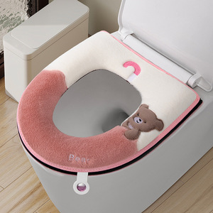 雨伞小熊撞色设计带提手马桶垫粘扣拉链坐垫冬季坐便套刺绣马桶套