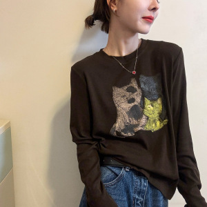 小猫印花面膜长袖T恤女欧洲站2025秋装新款欧货女装洋气打底衫潮
