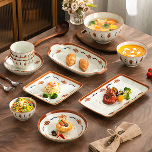 松发瓷器双耳烤盘陶瓷烤碗芝士焗饭盘子家用长方形微波炉烤箱器皿