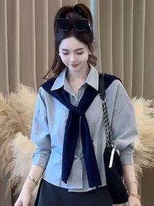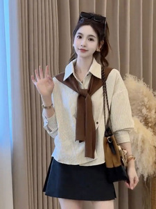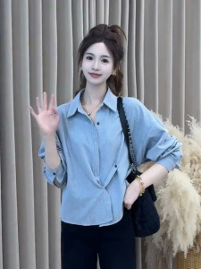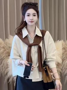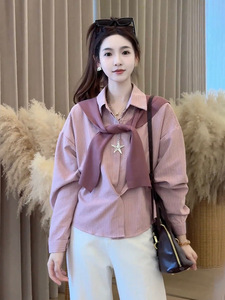 2025春秋季新款女士韩系条纹披肩长袖衬衫两件套宽松显瘦减龄上衣
