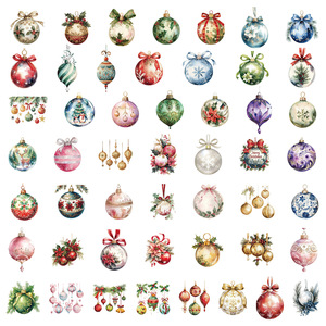 跨境专供50张创意圣诞铃铛PET贴纸DIY手帐本圣诞节派对装饰贴画