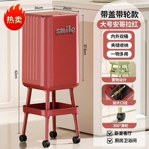 高脚垃圾桶家用高级感带盖轻奢带轮免弯腰厨房客厅按压开盖垃圾筒