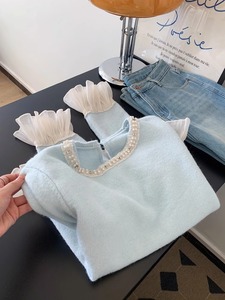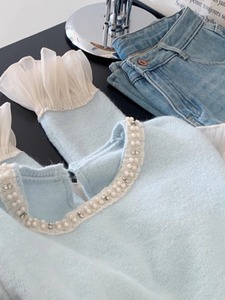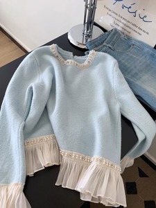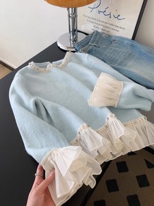 秋冬新款慵懒风温柔甜美减龄宽松别致钉珠荷叶边软糯毛衣女针织衫