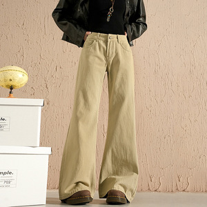 初秋美式卡其色怀旧阔腿牛仔裤直筒牛仔裤宽松显瘦微喇叭裤九分