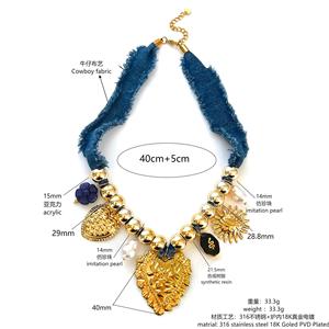 欧美时尚设计感不锈钢爱心太阳合成多吊坠女士项链秋冬牛仔布项饰