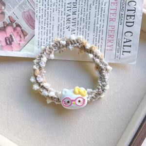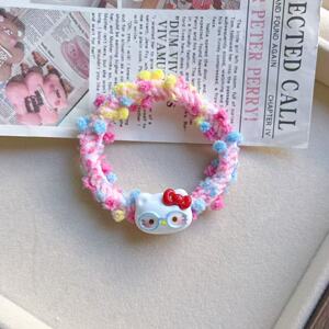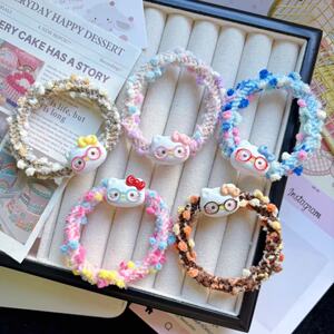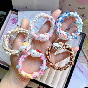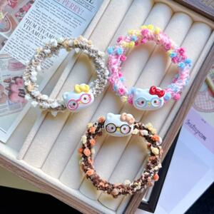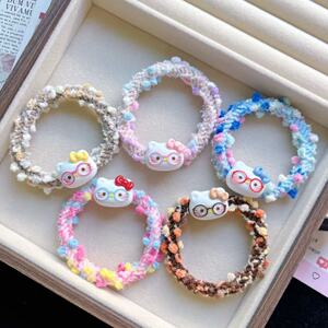 可爱卡通领结KT猫发圈ins少女甜美编织发绳情侣皮筋头饰学生发饰