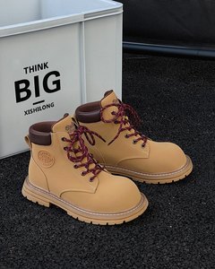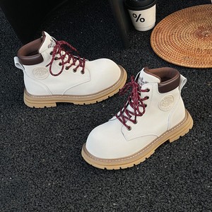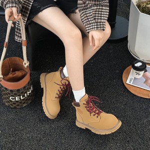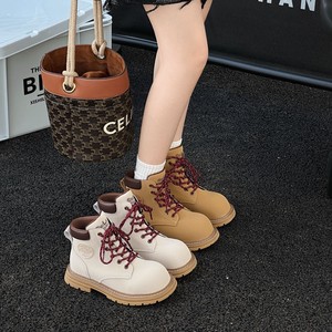 真皮沙漠系带大黄靴女2025秋季新款厚底复古英伦风骑士短筒马丁靴