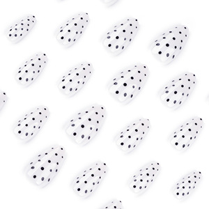 跨境热销白底黑色圆点波点美甲穿戴甲甲片杏仁形穿戴式假指甲批发