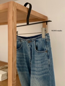 WGWE7137广州十三行女装2025秋装新款做旧宽松高腰阔腿直筒牛仔裤