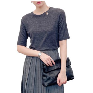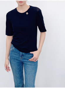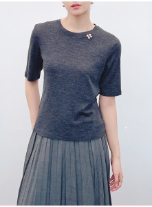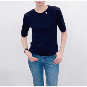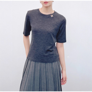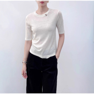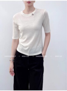 南油代发2025早秋款羊毛针织圆领手工订珠短袖打底衫气质百搭上衣