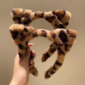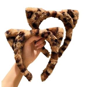 豹纹毛绒可爱猫耳朵网红发箍东大门同款秋冬外出韩系百搭发碎发