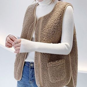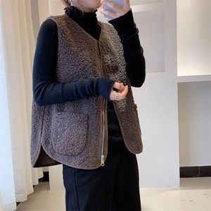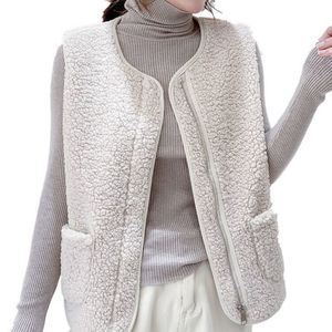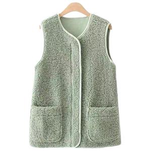 新款皮毛一体拉链羊羔毛绒马甲女秋冬款百搭宽松马夹背心坎肩外套