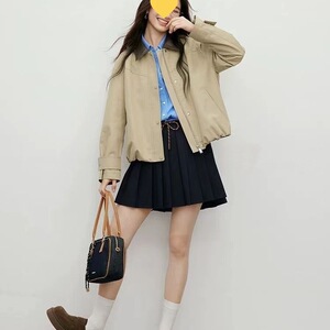 2025秋季新款外套翻领设计风复古撞色休闲上衣宽松百搭夹克女