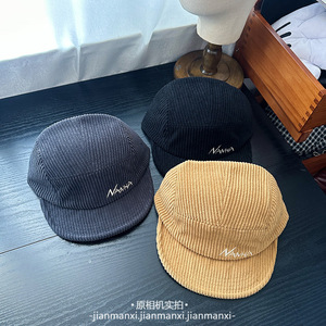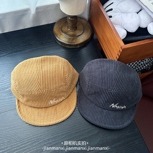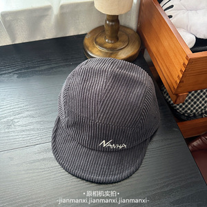 日式工装风灯芯绒软檐字母刺绣鸭舌帽子男女阿美咔叽休闲棒球帽
