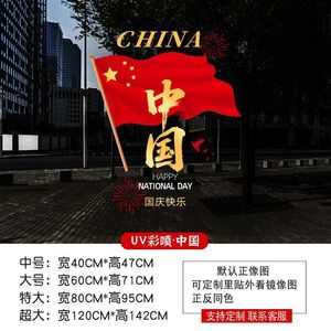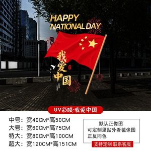 中秋国庆节装饰品静电贴窗贴橱窗场景氛围布置红旗窗花玻璃门贴纸