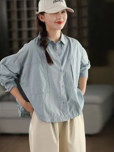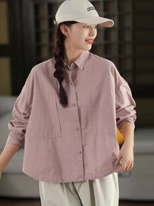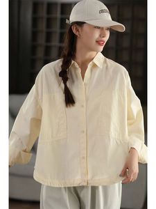 古咖服饰秋款纯色衬衫外套抽绳摆长袖外搭上衣短款休闲开衫
