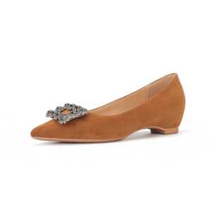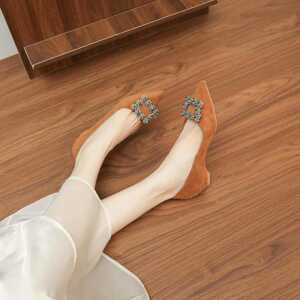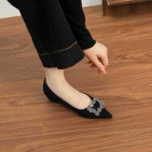 6388C-068法式水钻方扣尖头单鞋女春夏平底瓢鞋配裙子不累脚