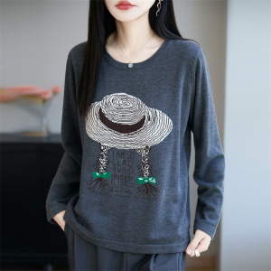 法式帽女孩提花针织打底衫女2025新款秋季潮针织长袖上衣女A7137