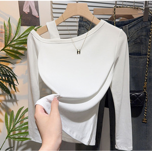 一字肩露肩修身显瘦长袖t恤女打底衫早秋设计感小众气质斜肩上衣