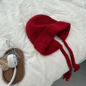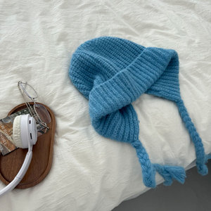 “冷冷清雪”针织巴拉克拉法帽包包帽子女秋冬套头护耳蓝色毛线帽