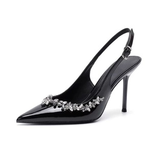 WO惠州市2025秋季高跟凉鞋水钻包头后空欧美百搭时尚绝美黑色细跟