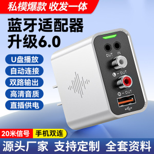 新品6.0蓝牙适配器蓝牙接收器U盘播放一拖二音响功放专用蓝牙发射