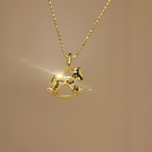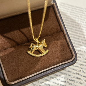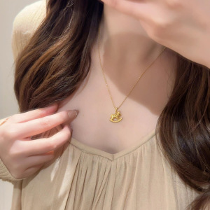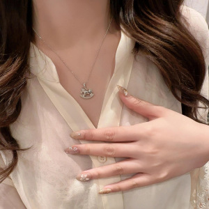 S925纯银马上有钱碎冰冰摇摇马吊坠项链女中古风复古小红书锁骨链