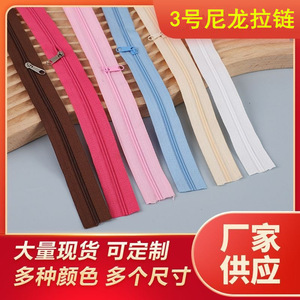 3号现货尼龙拉链被套家纺背包鞋服抱枕多色拉链条配拉头工厂批发