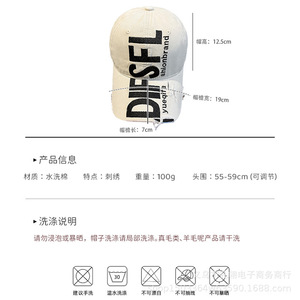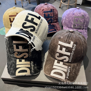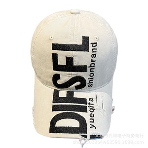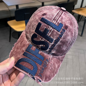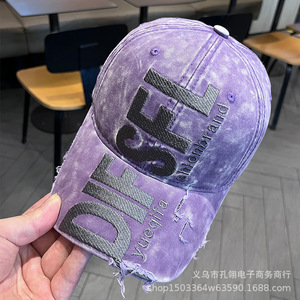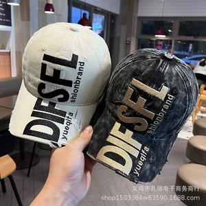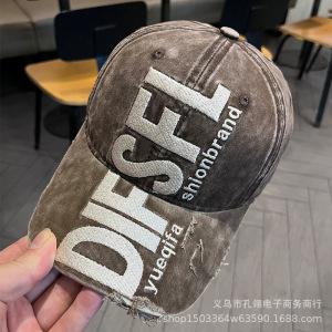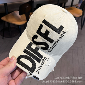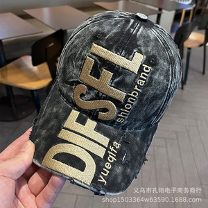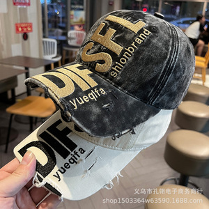 2025新款美式复古大头围破洞棒球帽宽帽檐大脸显脸小刺绣鸭舌帽男