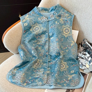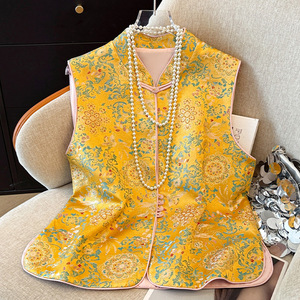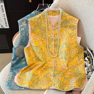 新中式立领盘扣马甲宋锦复古唐装桑蚕丝真丝马夹背心国风叠穿坎肩