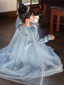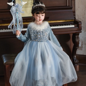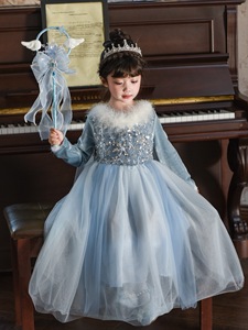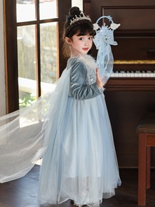 公主裙女童丝绒披风爱莎连衣裙女儿童秋季冰雪奇缘生日礼服裙小童