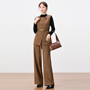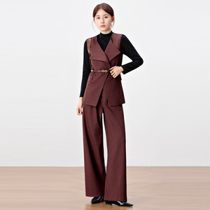轻奢高级通勤西装套装女2025秋季新款灰色马甲打底衫阔腿裤三件套