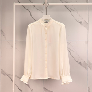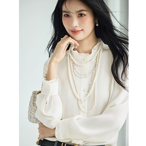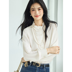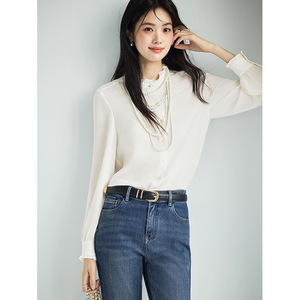 立领袖口木耳边珍珠扣衬衫2025秋装新款气质小上衣1G8922591