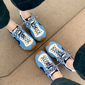 5cm内增高阿甘德训鞋女2025新款小花流浪鞋软底透气厚底跑步鞋子
