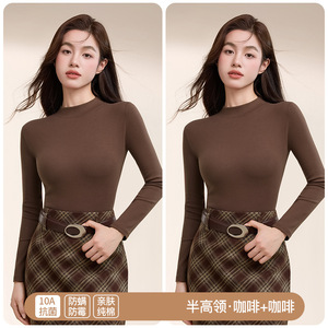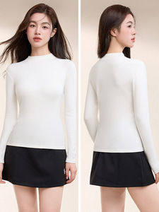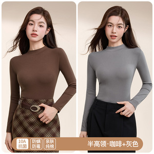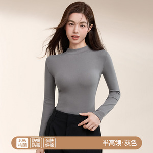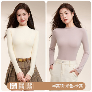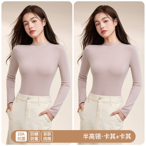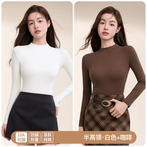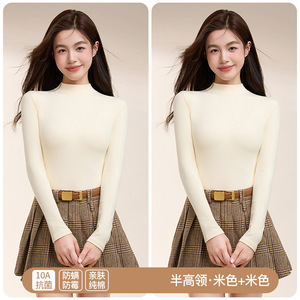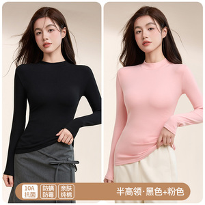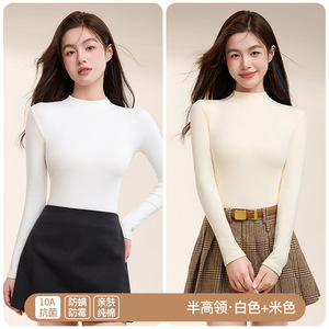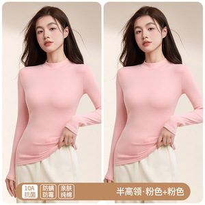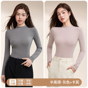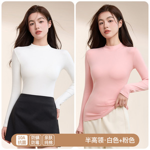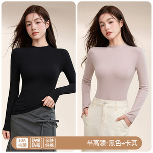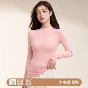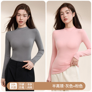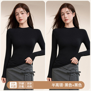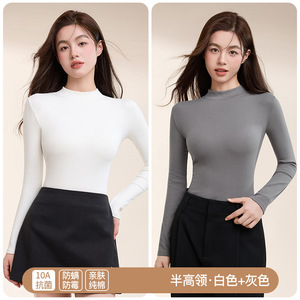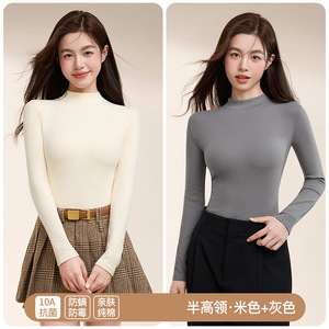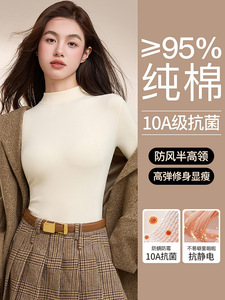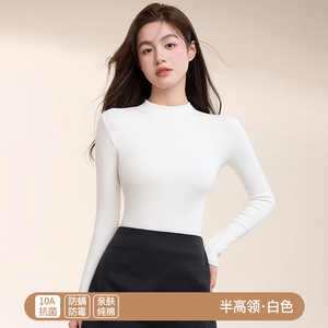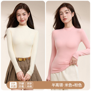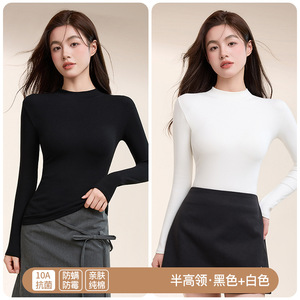 纯棉半高领打底衫女秋冬季长袖内搭保暖修身大码T恤秋衣外穿上衣