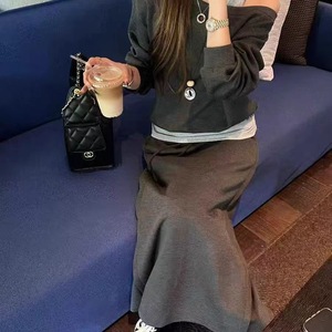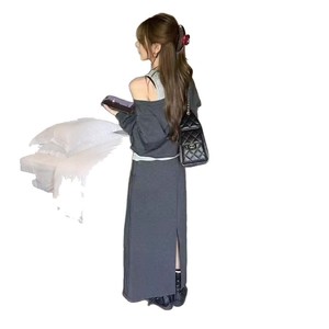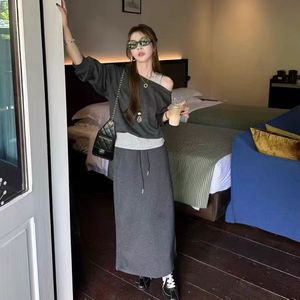 假两件露肩上衣+半身裙两件套女欧洲站2025年早秋新款时尚套装潮